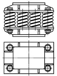 Отношение жесткостей цилиндрической винтовой пружины в вертикальном и горизонтальном направлении можно варьировать в широком диапазоне значений выбором размеров пружины. На рисунке А.3 показан пример упругой подвески из цилиндрических винтовых пружин сжатия.