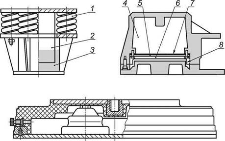 2 - поршень; 3 - демпфирующая жидкость; 4 - камера