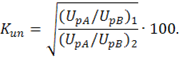 Сначала определяют среднее значение отношения пиковых значений напряжений на выходах пары акселерометров при заданном ударном ускорении и длительности импульса (UpA/UpВ)1.