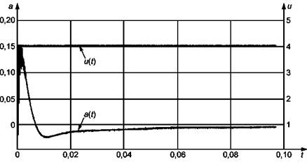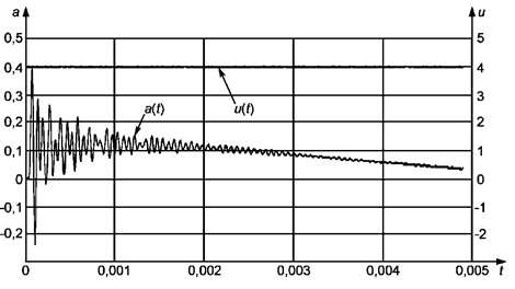 а (t) - ускорение на столе вибростенда; и(t) - напряжение на входе усилителя мощности вибростенда; t- время, с