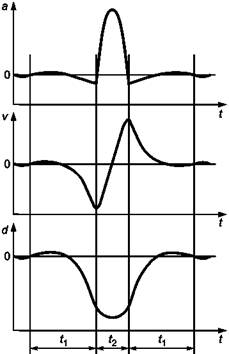 С.2 - Сигналы ускорения, скорости и перемещения при воспроизведении ударного