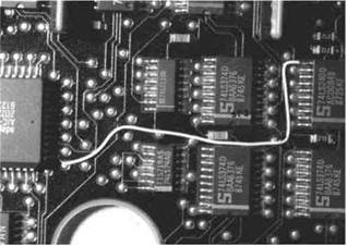На стороне пайки, за исключением соединителей на краях платы, не рекомендуется прокладывать навесные перемычки через посадочные места компонентов, если компоновка электронного модуля не запрещает прокладку проводов на других участках.