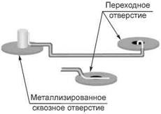 3. Провод припаян внахлест к поверхности переходного отверстия.