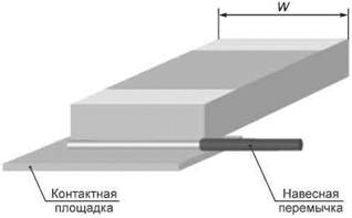 На стороне компонента допускается проход навесных перемычек над паяными контактными площадками при условии, что перемычки слабо натянуты, и их можно отодвинуть от контактных площадок для замены компонента.