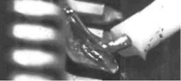 Изоляция сильно обуглена, и расплавленный побочный продукт внедряется в соединение.
