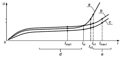 - возможное существование «критической зоны» означает, что для тока ниже, чем Iimp, напряжение на зажимах разрядника может быть таким низким, что зазор не пробьется и разрядник неспособен защитить УЗИП 2. Очень важно, чтобы пробой зазора происходил на фронте импульса;