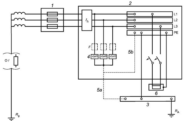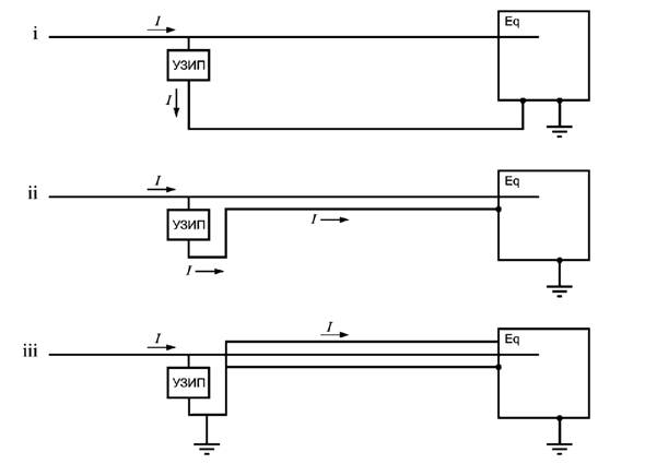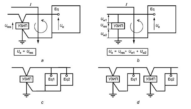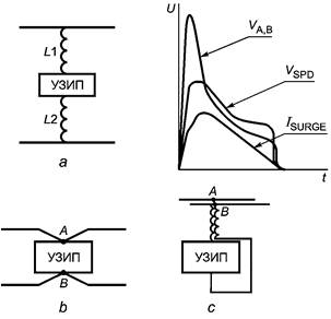 - наличие проводников или дополнительных устройств, например разъединителей, может добавить индуктивности в цепь. Разделение тока между УЗИП может также потребовать исследования. В этом случае требуется схема фактической установки;