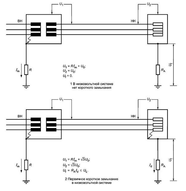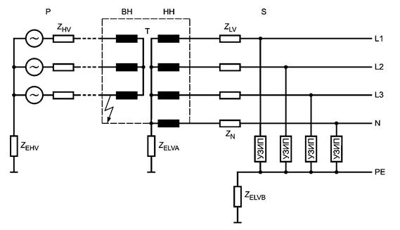 Повреждение может быть вызвано временной связью с грозовыми токами, проходящими в системе от молниезащиты близлежащих зданий или оборудования, в том числе ростом потенциала земли, связанного с рассеянием токов. Подобное распределение энергии обычно происходит через кабельную сеть и непосредственно потребителем не контролируется. Рассеянная энергия зависит от значений сопротивлений заземления местной сети.
