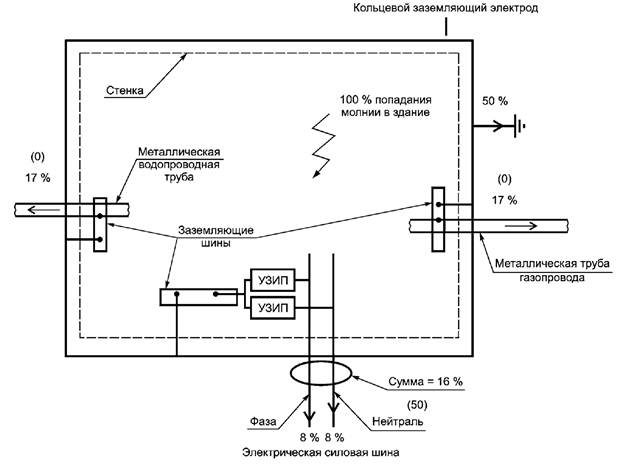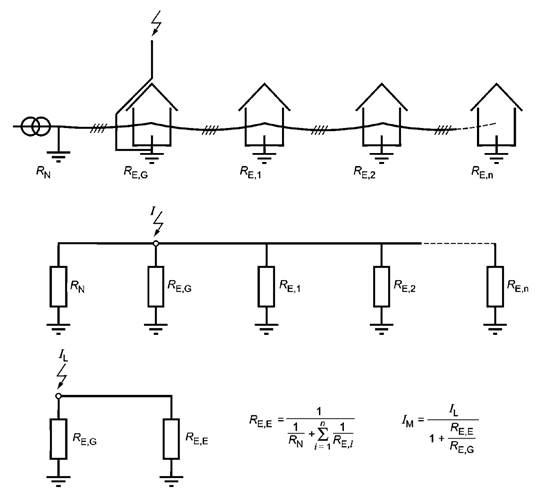 Приложение D посвящено расчетам распределения грозового тока между различными заземленными системами.