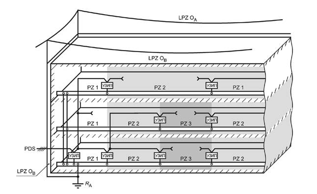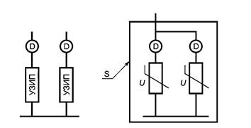 Расстояние d между двумя УЗИП, соответствующее сопротивлению Z, может быть использовано в качестве разделительного элемента.