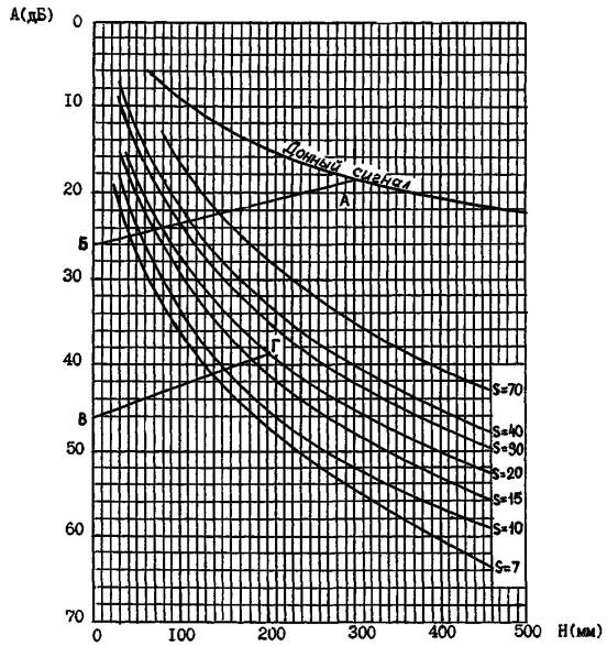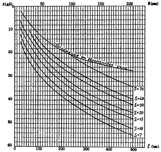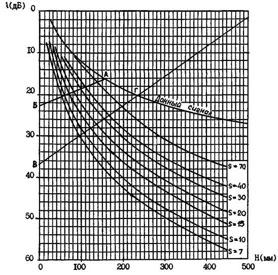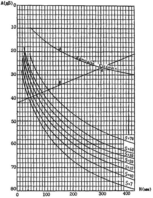 S - площадь отражателя (мм2); β = 50° (α = 65°); f = 2,5 МГц; D = 12 мм; λ = 1,27 мм