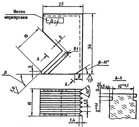 2.1.2. Дефектоскопы должны быть укомплектованы пряными, раздельно-совмещенными (Р-С) и наклонными преобразователями с углами наклона акустической оси 30; 40; 50°. Для изготовления призм наклонных преобразователей рекомендуется органическое стекло марок СОЛ, CT-1, 2-55 по ГОСТ 15809-70 (чертеж призмы преобразователя приведен в приложении 1). Допускается применение преобразователей с призмой из других материалов.