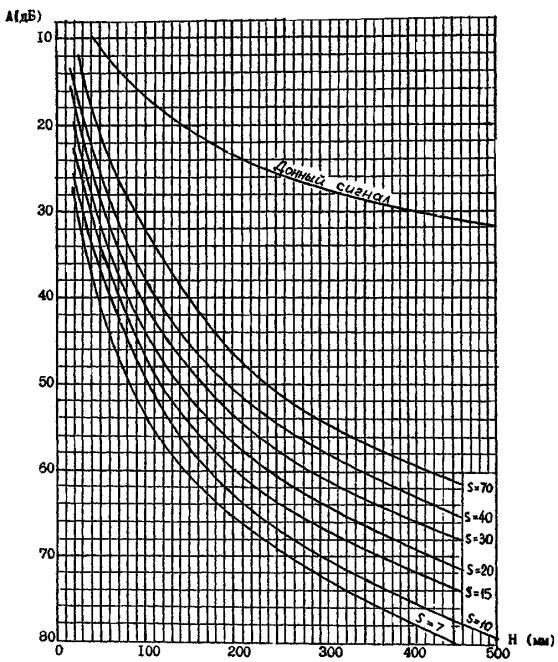 S - площадь отражателя (мм2); β = 30° (α = 39°); f = 2,5 МГц; D = 12 мм; λ = 1,27 мм