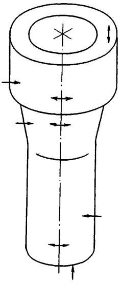 1.3. Объем прозвучивания каждой отдельной поковки определяется совокупностью направлений прозвучивания. Объем прозвучивания бывает полным и неполный. Полным считается прозвучивание в трех взаимно перпендикулярных направлениях (для прямоугольных заготовок) или в осевом, радиальных и хордовом направлениях (для цилиндрических заготовок). В случае отсутствия одного из направлений объем прозвучивания будет неполным.