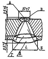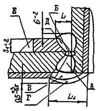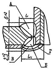 Соединение Г. Сварные соединения люков, штуцеров, соединительных камер с основными обечайками, сферами, переходными частями, днищами или сосудами с плоской боковой поверхностью.