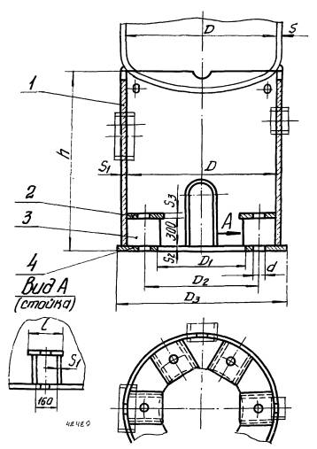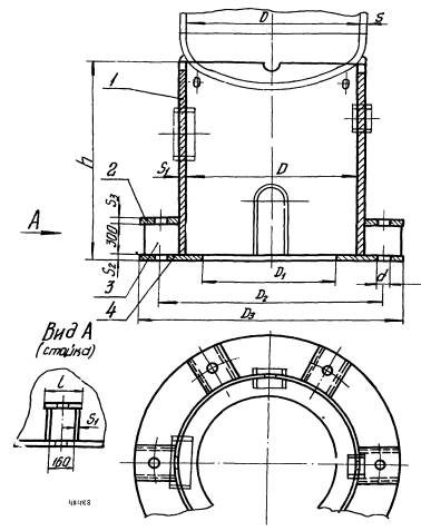 1 - обечайка; 2 - планка; 3 - ребро; 4 - кольцо нижнее