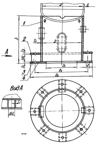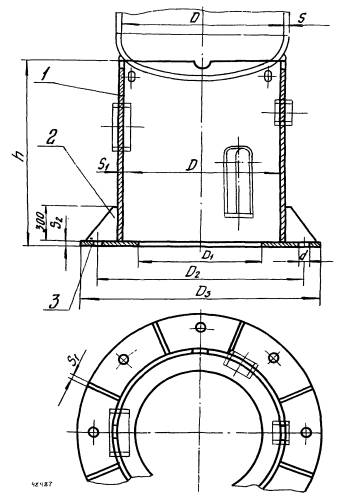 1 - обечайка; 2 - косынка; 3 - кольцо нижнее
