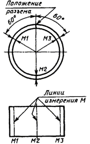 Непрерывное измерение толщины стенки в осевом направлении проводят по линиям измерения М в соответствии с рисунками 4 и 5 для ширины В £ 50 мм и наружного диаметра D0 £ 150 мм.