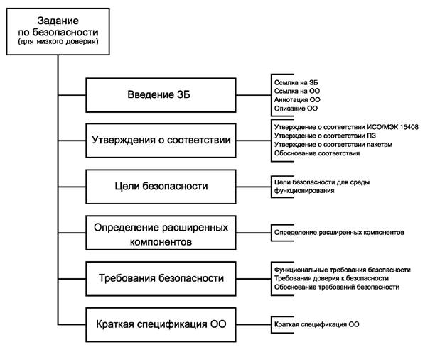 ПЗ для низкого уровня доверия (упрощенное ПЗ) соотносится с обычным ПЗ (т. е. ПЗ с полным содержанием) также, как и ЗБ для низкого уровня доверия (упрощенное ЗБ) соотносится с обычным ЗБ. Это означает, что упрощенное ПЗ включает: