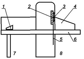 3.5 стол загрузочный (стол подачи) (feeding table; beladetische): Стол для загрузки (подачи, ввода) разрезаемого материала в одноножевую резальную машину.