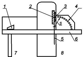 Средства защиты опасного места между разгрузочным столом и неподвижными частями машины резальной одноножевой |