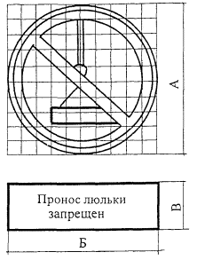 Знак, запрещающий пронос люльки. Устанавливается по линиям ограничения зоны обслуживания подъемника