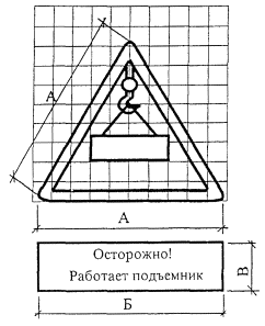 Знак, предупреждающий о работе подъемника. Устанавливается на границе опасной зоны, в местах возможного прохода людей.