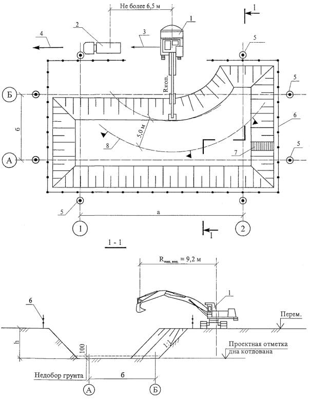- производителю работ на исполнительном чертеже передать машинисту экскаватора схему закрепления осей с расстояниями в натуре между ними и абсолютными отметками знаков.