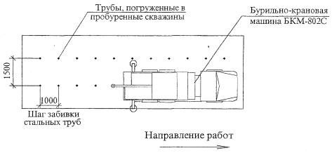 Погружение в них стальных труб бурильно-крановой машиной БКМ-802С |