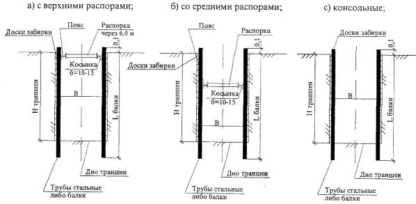 Рисунок 1 - Варианты крепления стенок траншей глубокого заложения