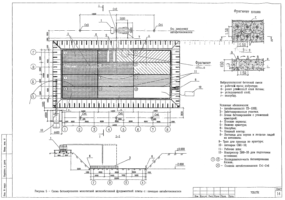 Настоящей картой предусмотрено бетонирование фундаментной плиты с помощью автобетононасоса марки СБ-126Б.
