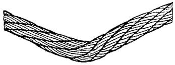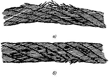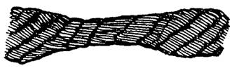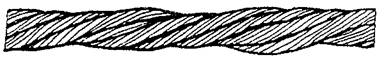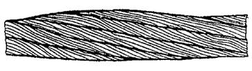 7.4. При уменьшении диаметра каната в результате повреждения сердечника - внутреннего износа, обмятия, разрыва и т.п. (на 3 % от номинального диаметра у малокрутящихся канатов и на 10 % у остальных канатов) канат подлежит браковке даже при отсутствии видимых обрывов проволок (рис. 8).