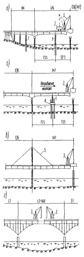 4.3 Навесной и полунавесной монтаж является основным способом сооружения решетчатых разрезных и неразрезных ферм, сплошностенчатых пролетных строений с переменной высотой балок, а также пролетных строений арочных, рамных, вантовых и висячих мостов.