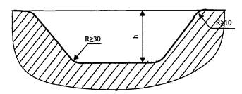 А.7 При заварке допускного соединения (после зачистки стальной щеткой до металлического блеска) производится визуальный контроль каждого валика и каждого слоя. Поперечное сечение выполненного допускного контрольного сварного соединения приведено на рисунке А.1.