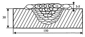 3.1 заварка выборки: Нанесение с помощью сварки слоев металла на поверхность выборки до ее заполнения