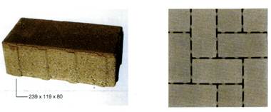 Размеры плит для мощения должны быть: высота сечения (толщина) - не менее 60 мм, площадь опорной поверхности не более - 0,36 м2 , длина грани - не более 60 см.
