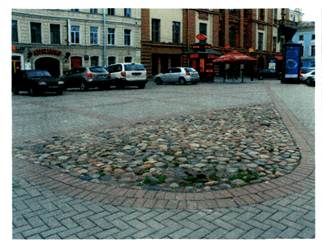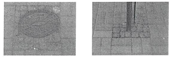 3 Разрушение искусственных камней мощения в местах расположения смотровых и канализационных люков. Это объясняется недостаточной подготовкой основания перед укладкой камней, наличием динамических усилий в местах примыканий.