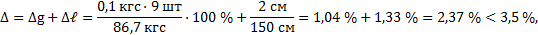 Для ключей с пределом измерений до 130 кгс⋅м (1274 Нм) и длиной ℓ = 1,5 м погрешность измерений Δ, при тарировании грузами весом по 10 - 15 кгс (98 - 147 Н) и взвешенных с точностью до 0,1 кгс (0,98 Н), составляет