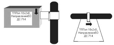 5.3.12 Проложенные кабели маркируются в соответствии с пунктом 9.5.2 ГОСТ Р 53246, как показано на рисунке 4. Маркировка осуществляется свинцовыми полосками или пластмассовыми бирками, на которых указывается марка кабеля (верхняя строчка), номер направления цепи (нижняя строчка) и указатель (стрелка) направления на диспетчерский пульт (справа от выше нанесенных надписей).