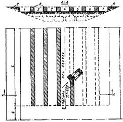 В.8 Уплотнение отсыпанного слоя грунта на площадке для пробного уплотнения следует выполнять круговыми проходами катков, начиная с краевых полос. Величина перекрытия следов должна составлять 0,3 м.