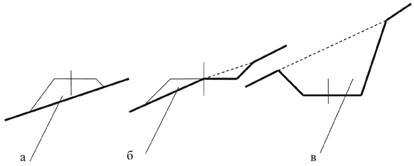 а) насыпь; б) полунасыпь-полувыемка; в) выемка