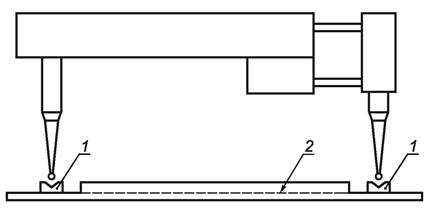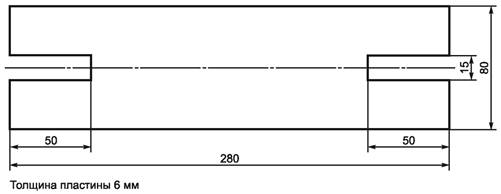 5.2.3 Стальная пластина размерами » 280 ´ 80 ´ 6 мм с прорезями; используется как шаблон для частичного удаления покровного слоя и выравнивания образца при нанесении рисок и во время проведения измерений (см. рисунки 1 и 2).