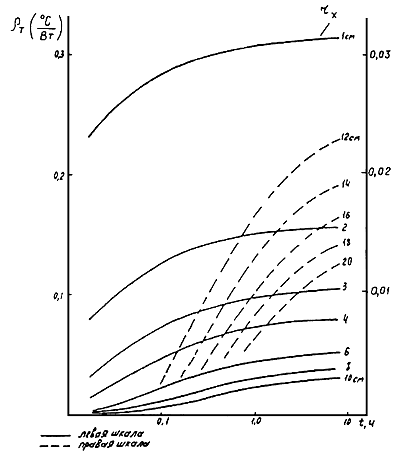 Так, например, слой с коэффициентом теплопроводности 0,1 Вт/мК и толщиной 100 mm при температуре поверхности 400 К обусловливает спад температуры приблизительно на 1,3 К.