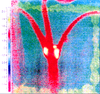 После того как была установлена температура черненного места, измеряется температура в точке рядом с этим местом. Для обоих измерений на пирометре - устанавливается коэффициент излучения e = 1,0.