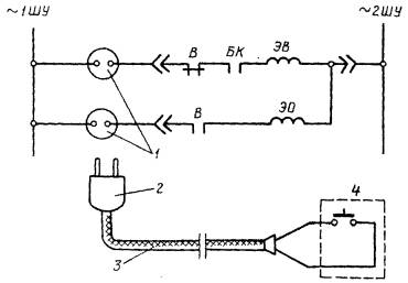 1.5.8. Шкафы КРУ должны быть по возможности оборудованы устройствами дистанционного управления выключателями. При отсутствии устройств дистанционного включения рекомендуется смонтировать их в первую очередь для выключателей ВМП-10П, ВМПП-10, ВМГ-133 и ВМГ-10 с пружинными и пружинно-грузовыми приводами. Пример исполнения такого устройства с помощью переносного пульта и шлангового кабеля, подключаемого к розетке приведен в приложении 3.