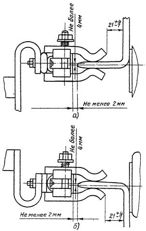 2. Измерить расстояния А и Б (см. рис. 29, в). Разность А-Б дает размер зацепления системы скоба-упор, который должен быть не менее 7 мм.