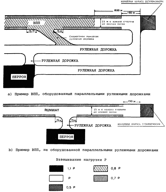 Эти данные в первую очередь позволяют эксплуатантам воздушных судов определить разрешенные типы воздушных судов и эксплуатационные массы, а изготовителям воздушных судов - обеспечить совместимость покрытий аэропорта с создаваемыми воздушными судами. Однако при этом не требуется предоставления данных о фактической прочности основания или о максимально допустимом давлении в пневматике. Поэтому обычно требуемые данные о прочности оснований и давлении в пневматике сведены в категории, как показано в п. 1.1.3.2 ниже. Вполне достаточно, если администрация аэропорта установит категории своих покрытий (см. также примеры в п. 2.5.6 Приложения 14).