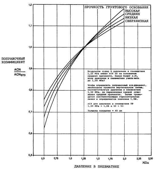ACN: число, выражающее относительное воздействие воздушного судна на искусственное покрытие для установленной стандартной прочности грунтового основания.