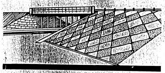 Укрепляемая поверхность откоса делится на карты 3,0´1,8 м асфальтовыми планками размерами 3´6´50 см (антисептированными досками)