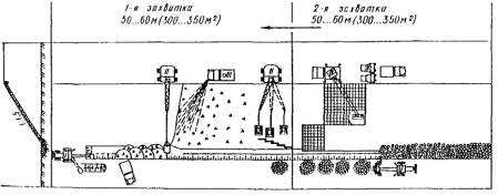 2.4. Работы по укреплению откосов насыпей и конусов монолитным бетоном ведет комплексная механизированная бригада поточным методом на двух захватках (рис. 1).